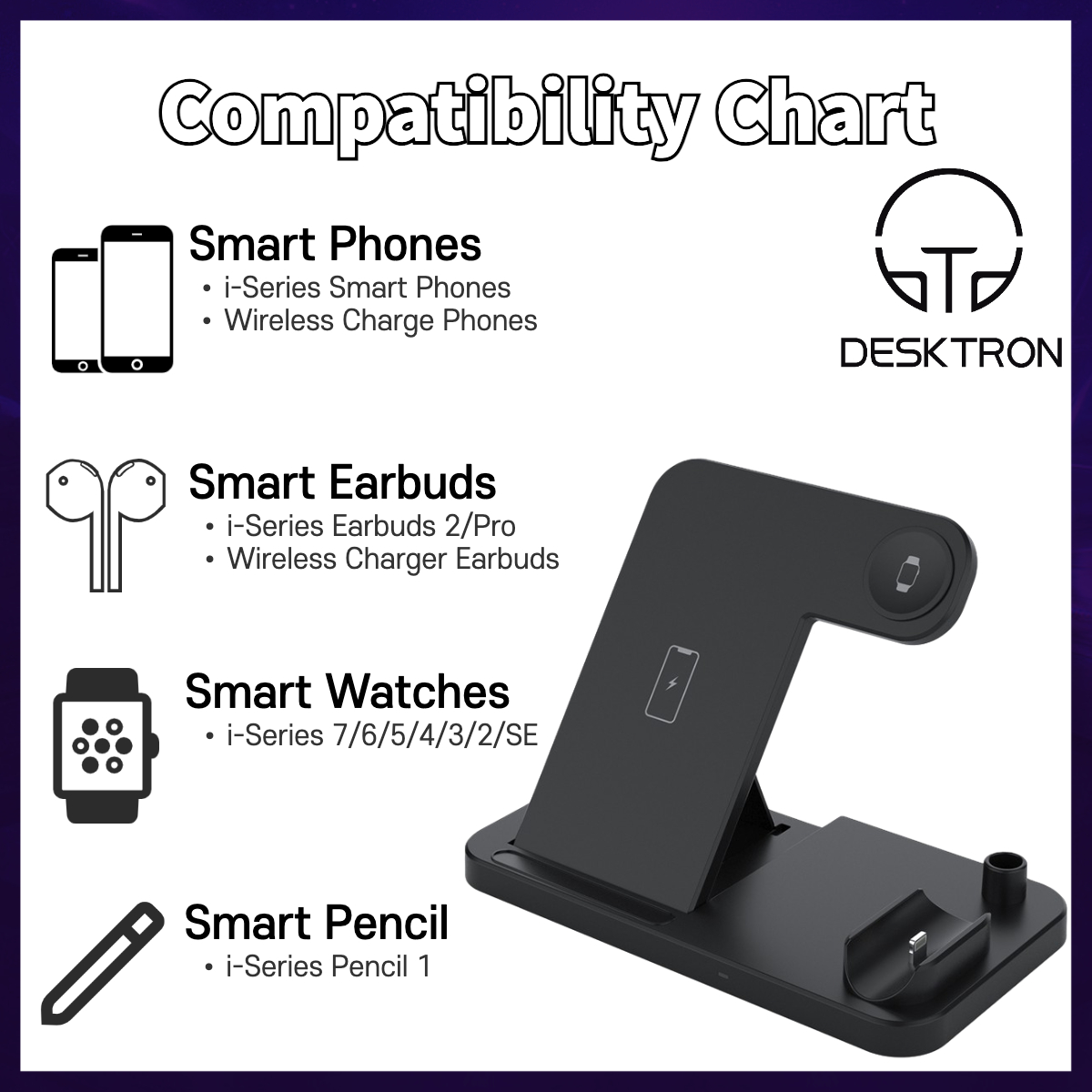 DESKTRON Wireless Charger Qi 4 IN 1 Charging Station, Wireless Charging Pad, Charging Station Dock, Qi Wireless Fast Charge, Compatible with iWatch, Apple Pencil, Airpod Airpod Pro, iPhone 13 and Qi W