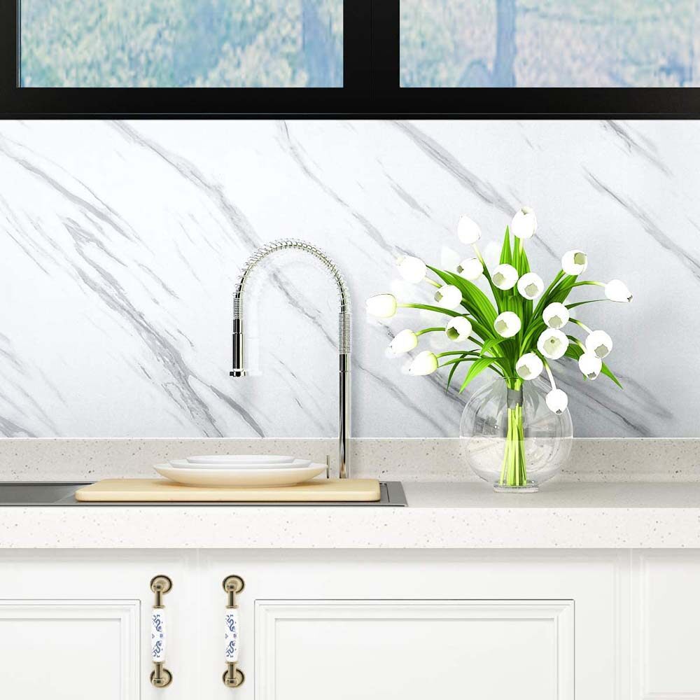 Yenhome Jazz White Marble 60*300cm Wallpaper Contact Paper for Countertops Peel and Stick Wallpaper for Furniture Renovation Kitchen Cabinets Shelf Liner Adhesive Contact Paper Waterproof Home Decorat