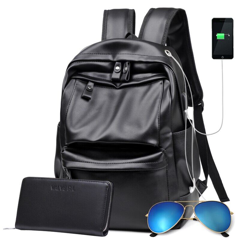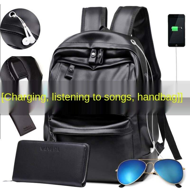 Backpack male Korean men's backpack fashion trend leather texture school bag new travel large capacity junior high school students