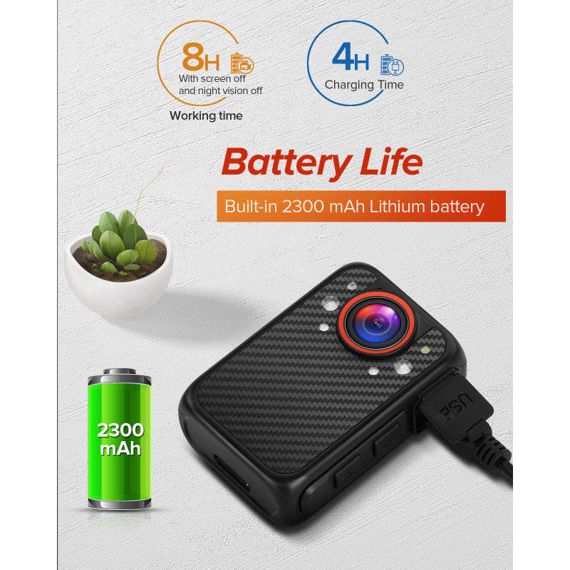 【Full HD 1080P human body camera: 】 A human body camera with full HD 1080P video resolution, with manual night vision function, it has built-in 1 white LED light, one red and one blue patrol light, which can capture the face clearly in low light conditions The picture, 140° wide angle allows users to capture more information about key nearby scenes. Very suitable for police patrols, meeting records, driving records.