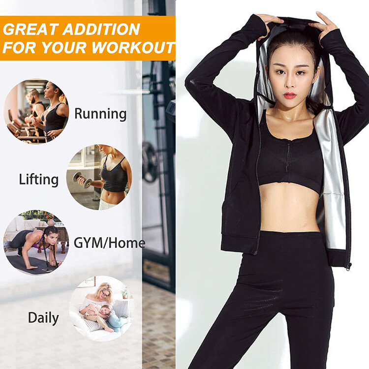 HIKAYA Sauna Suit Women Hooded Fitness Gym Exercise Training Sweat Shirt Workout Sauna Jacket