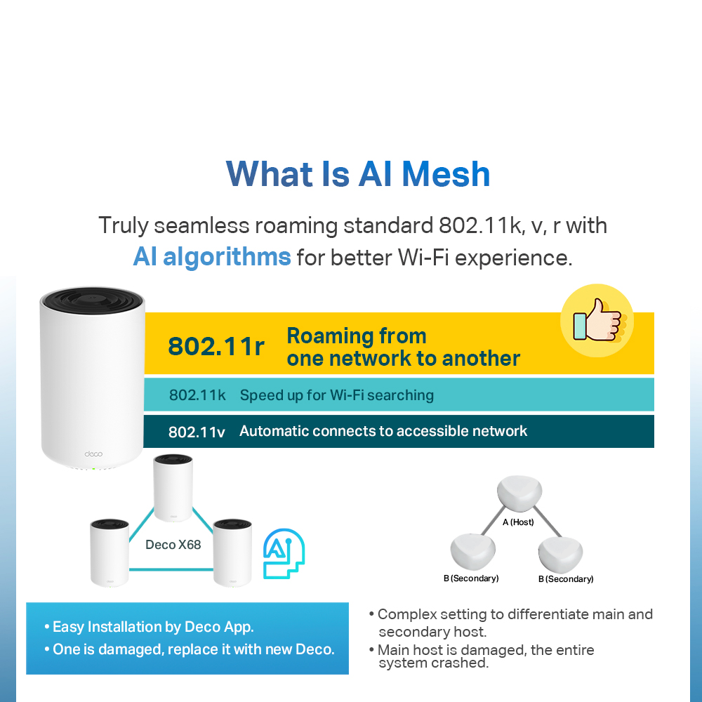 TP-LINK Deco X68 AX3600 Tri Band Gigabit OFDMA MU-MIMO WiFi 6 AI-Driven Mesh Router (Whole Home Mesh WiFi 6 System) Works with all Telcos (Supports IPTV)