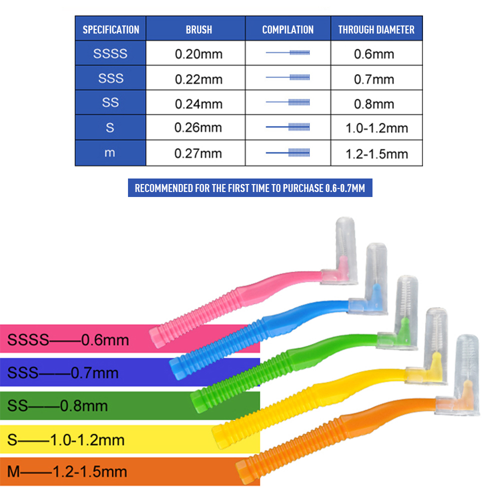 Everbeauty 60pcs TEPE Angle Interdental Brushes Tooth Flossing Head Hygiene Dental Plastic Interdental Brush Toothpic Tooth Brush Cleaner Teeth Stick Dental Hygiene Tools