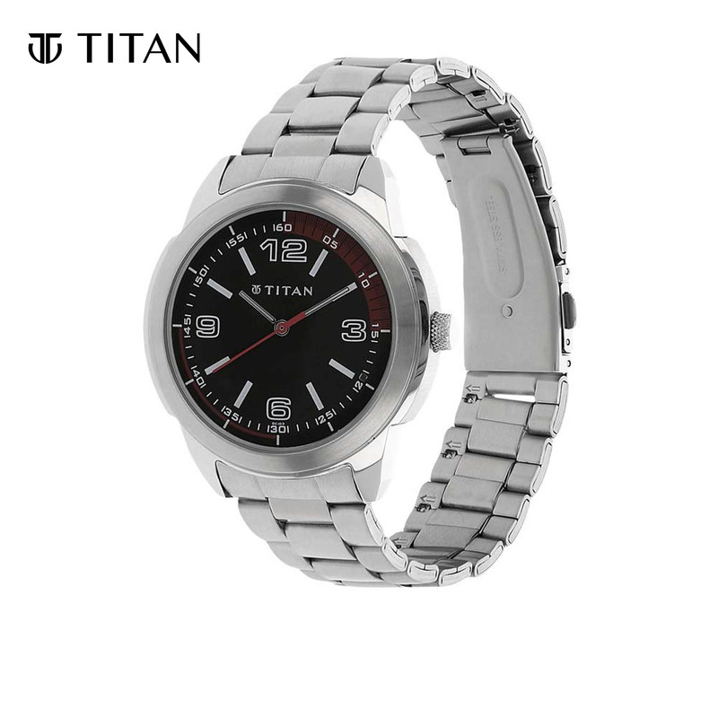 Titan Black Dial Silver Stainless Steel Strap Men's Watch 1585SM02