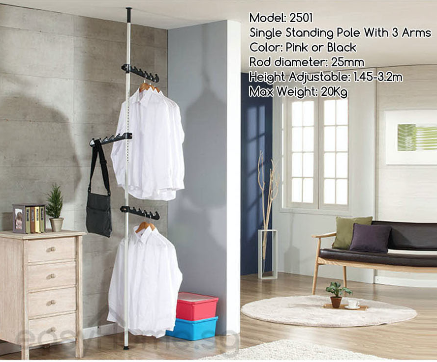 2501 Korean Standing Pole Clothes Rack- Adjustable Hanger Bar/ Drying Shelf