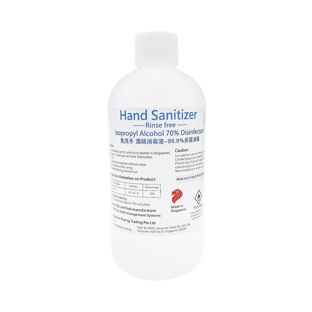 Hand sanitizer rinse free (moisturizing odourless & pH: 7)Isopropyl Alcohol Liquid disinfectant(kills 99.9% of bacteria) 500ml Screw Cap