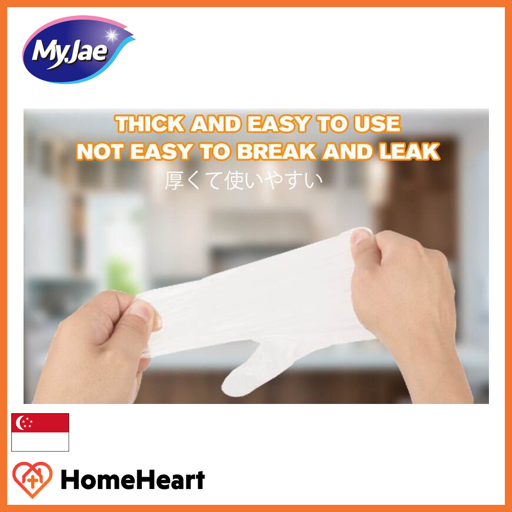 MyJae PE Disposable Gloves - (3 Pack, 300 Pieces) - Non Toxic, Thick, Leakproof With Ribbed Design For Added Friction