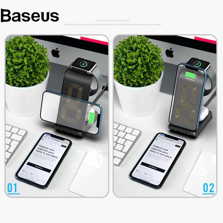 Baseus AK03 3-in-1 15W Wireless Charger Qi Fast Charging Stand Dock for iPhone Huawei Xiaomi iWatch AirPods Pro?24hrs ship out?