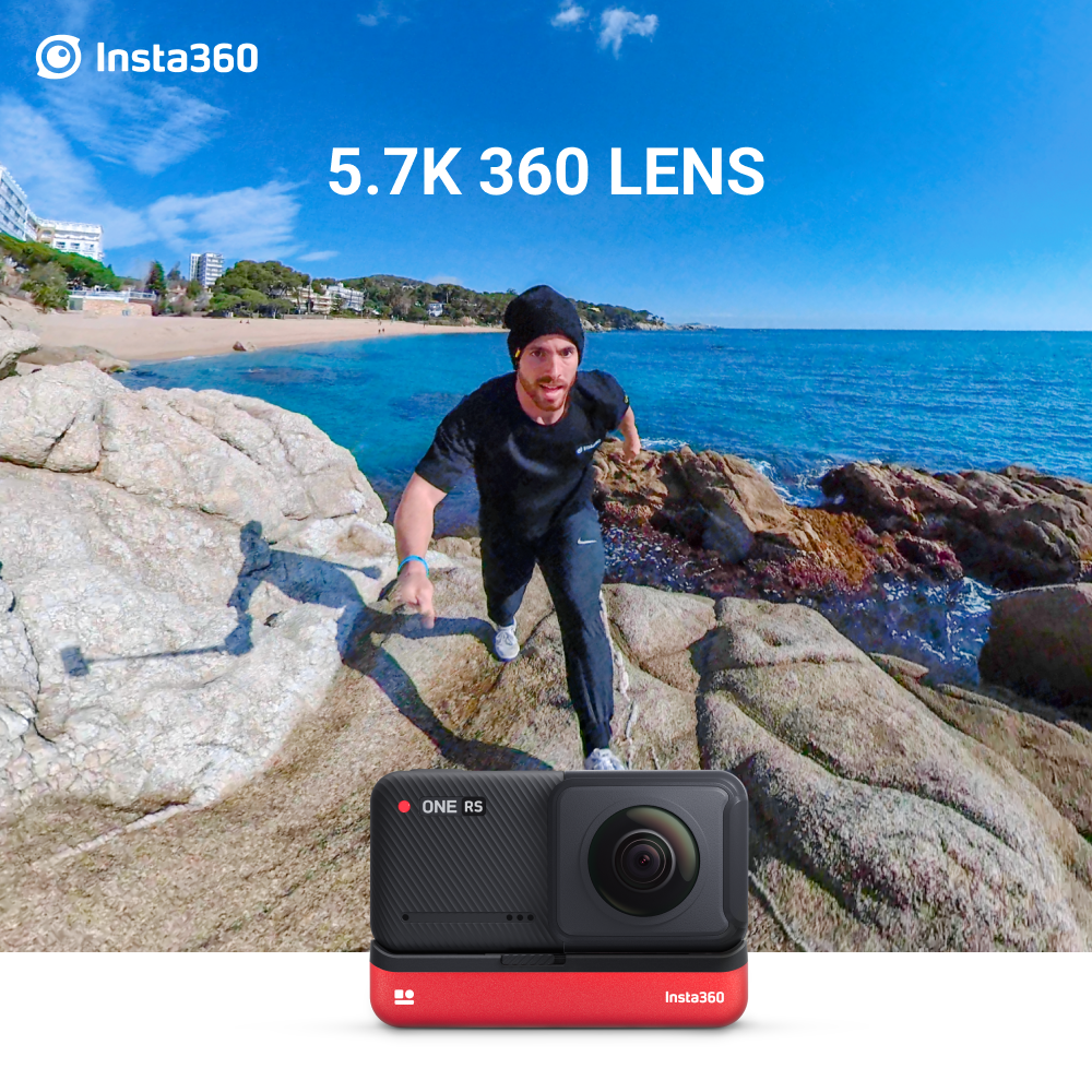 Insta360 ONE RS – Waterproof 4K 60fps Action Camera & 5.7K 360 Camera with Interchangeable Lenses, Stabilization, 48MP Photo, Active HDR, AI Editing