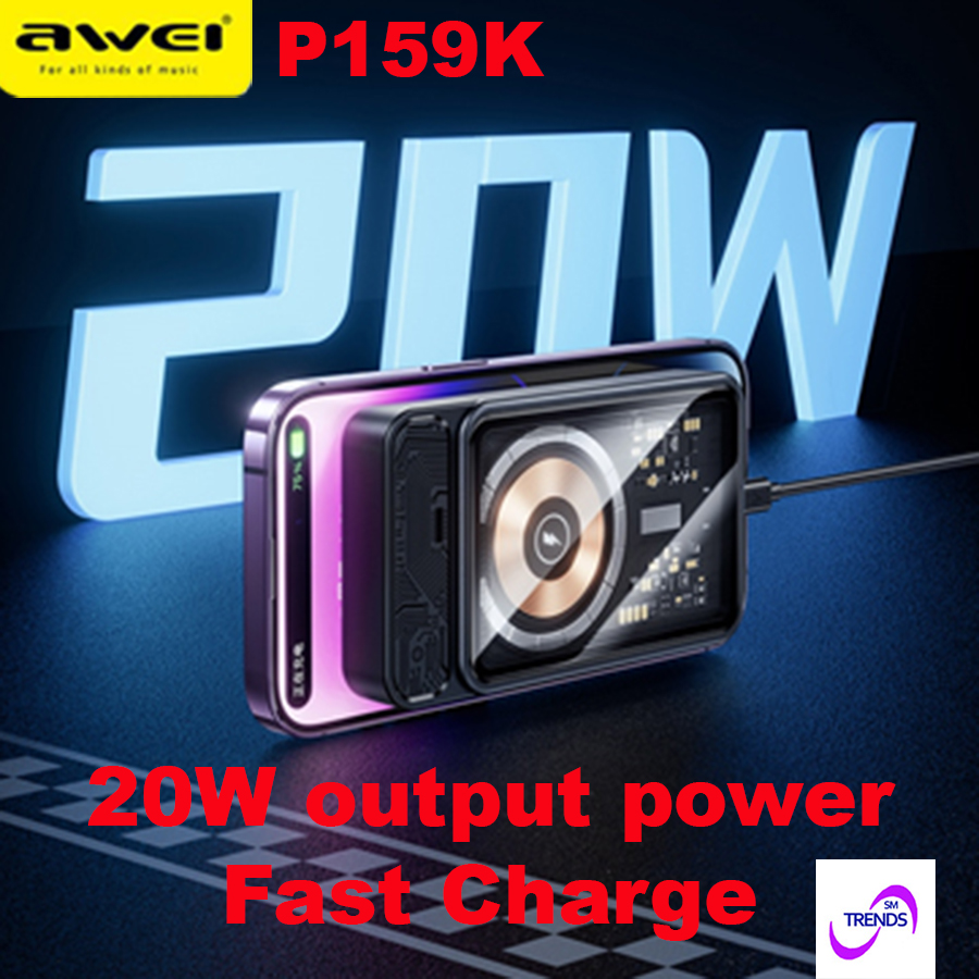 Awei P159K 15W Magnetic Wireless Power Bank 20W PD 10000mAh Type-C Fast Charge Portable Power Bank