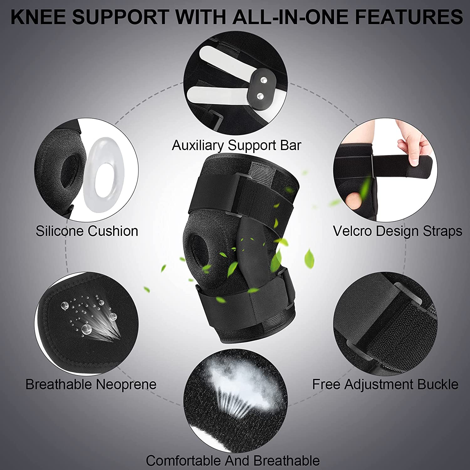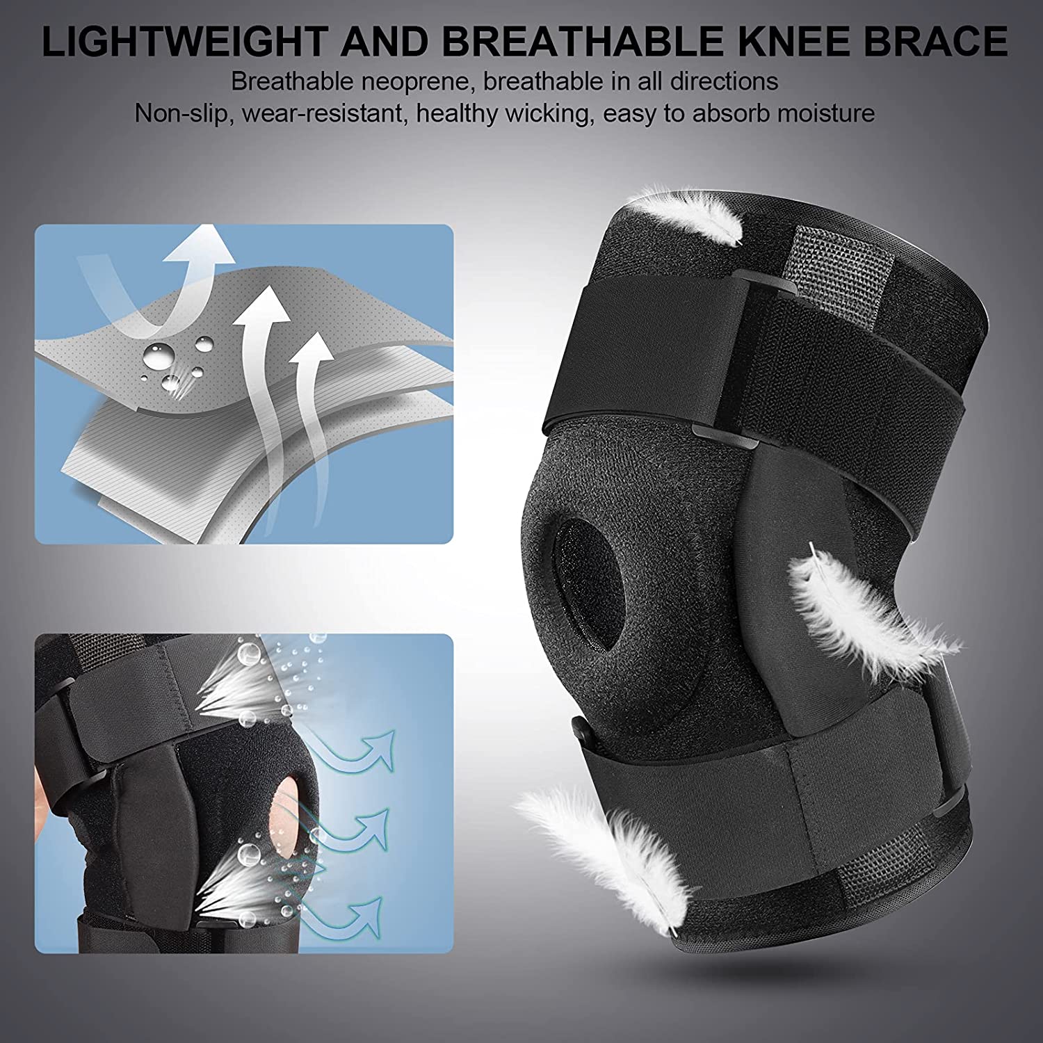 • Exclusive Patent: Knee Brace with Side Spring Stabilizers & Patella Gel Pads. Strengthen Joint Support and Reduce Knee Load.