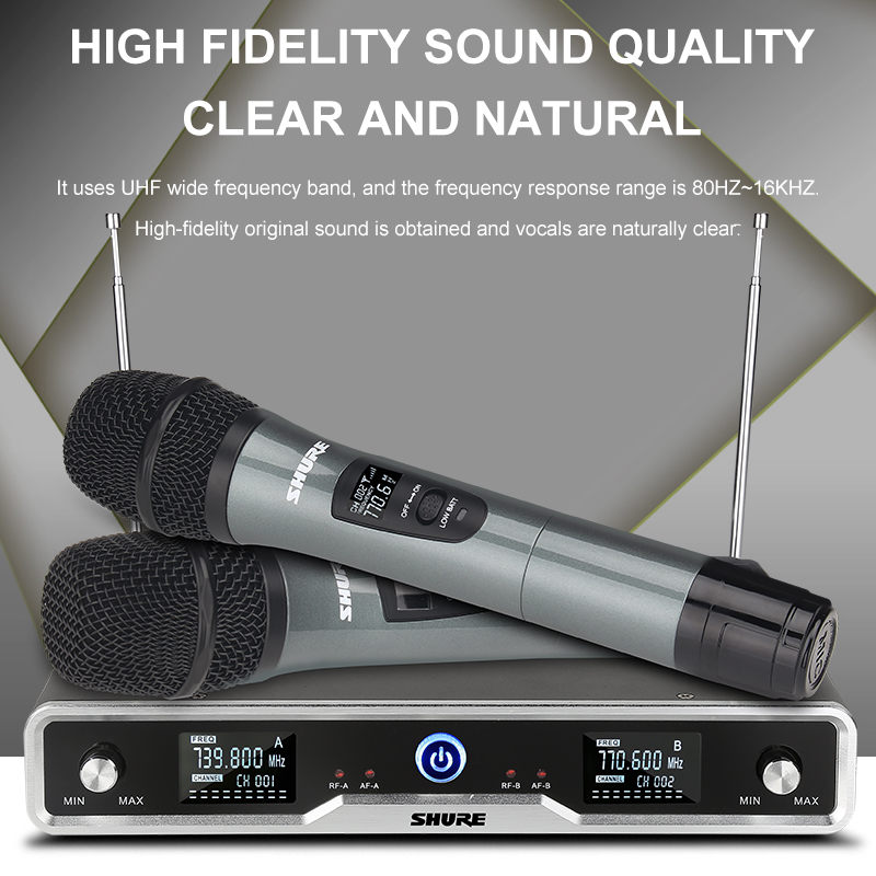 SHURE SR-XPRO UHF Wireless Dual Microphone Dual Microphone SM58 Sturdy and lightweight aluminum body. Receive signals from 800HMz distance, a new set of high frequency wireless microphones.