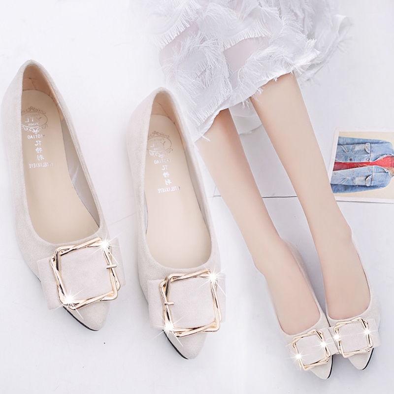 ♞▽ Net red same summer women's shoes shallow mouth flat bottom pea shoes cover feet soft bottom lazy sh网红同款夏季女鞋浅口平底豆豆鞋套脚软底懒人鞋仙女尖头单鞋百搭2021100117lang2051.sg