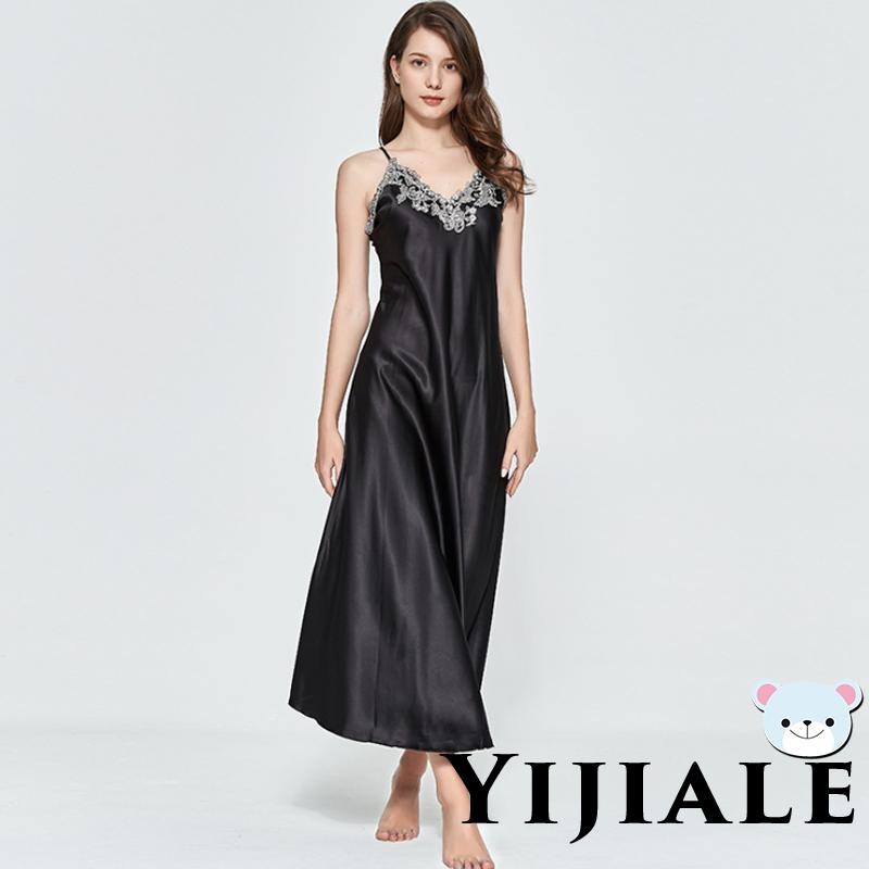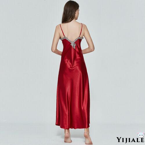 ◄∋ YJ★Women Satin Long Nightgowns Silk Lace Sexy Lingerie Sleeveless Deep V Nightdress Sleepwear