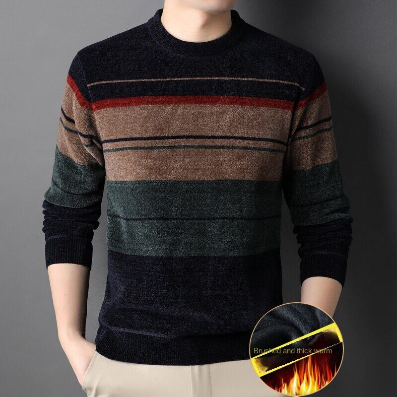 Cozy Up Fashion Striped Pullovers Knitted Sweater Men Clothing Thick Winter Warm Sweaters Mens Clothes Christmas Sweatshirts