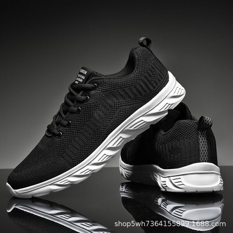 Mesh Surface Shoes Men's Summer Breathable Thin Mesh Surface Hollowed Large Mesh Men's Shoes Casual Running Black Flyknit Sneaker