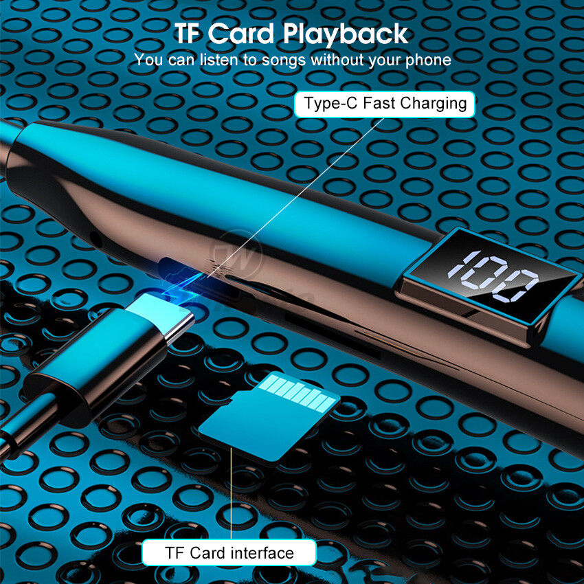 Wiresto TWS Earphone Bluetooth 5.2 In-Ear Headphones Neck Hanging Earbuds IPX5 Waterproof Sport Earphone HIFI Stereo Headset LED Power Display Earbuds Support TF Card Remote Photo With Flashlight