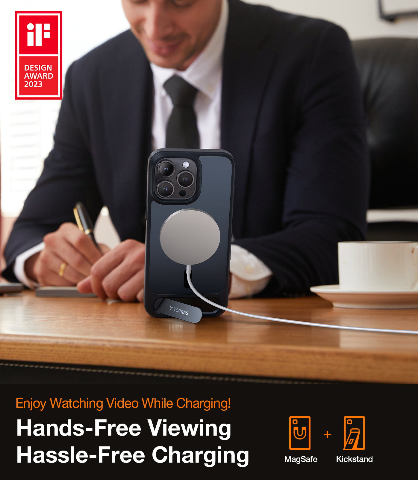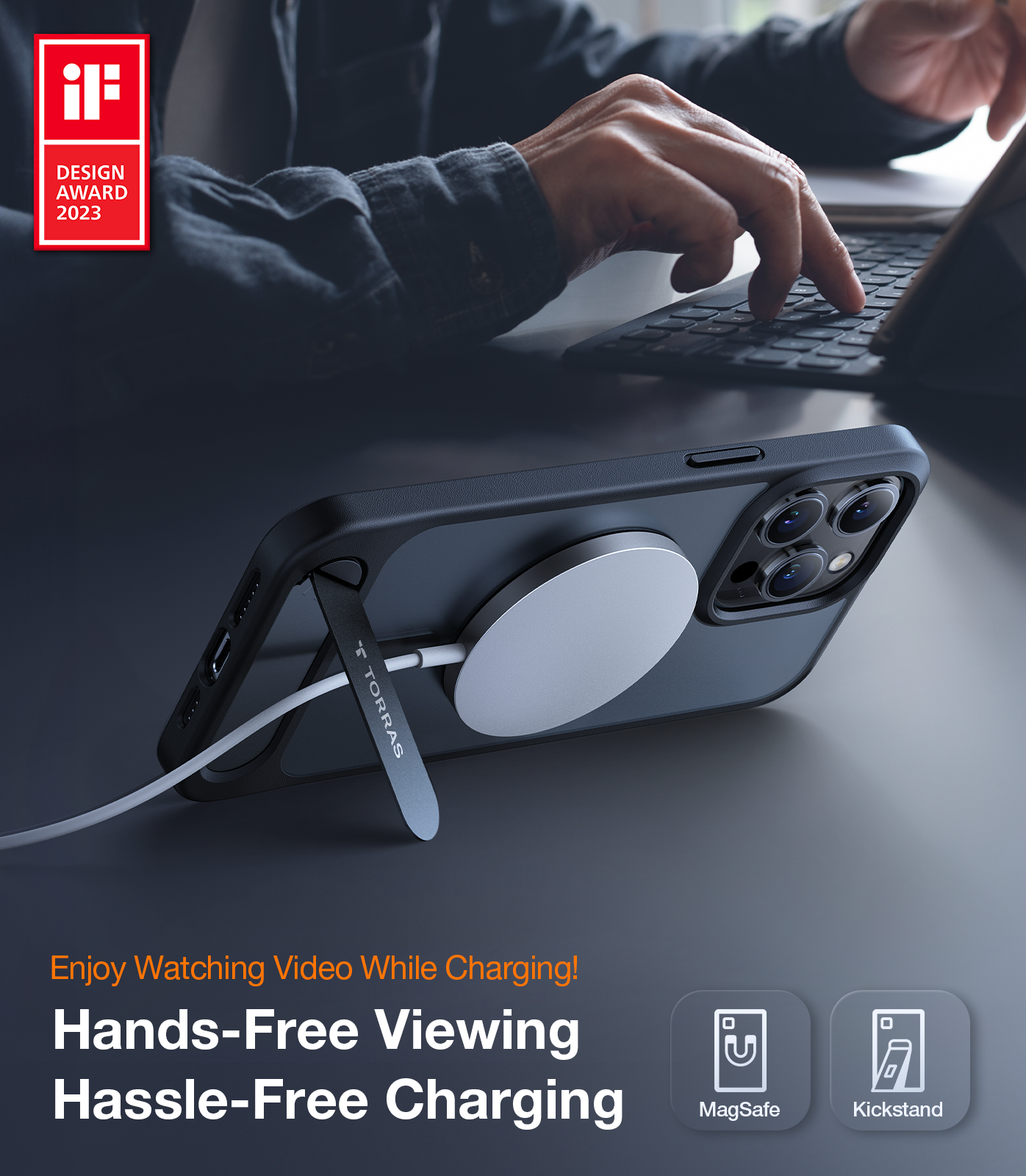 TORRAS Magnetic UPRO™ Pstand Series iPhone 15 Case, Drop Protection, Transparent Clear Air Cushioning Cover With Stand