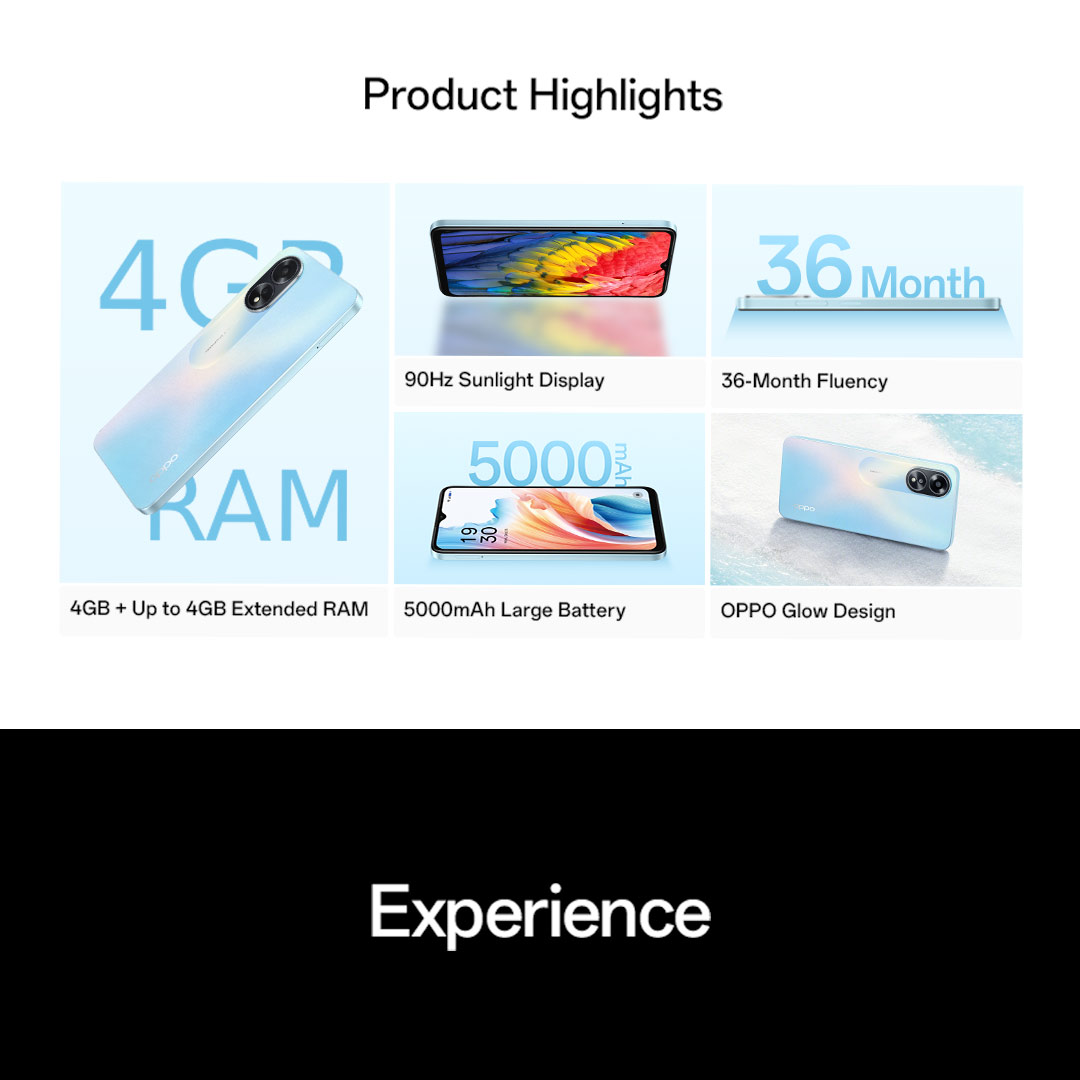 OPPO A18 / 300% Ultra Volume Mode / 90Hz Sunlight Display / 5000mAh Battery / 36-Month Fluency / 2 Years Local Warranty