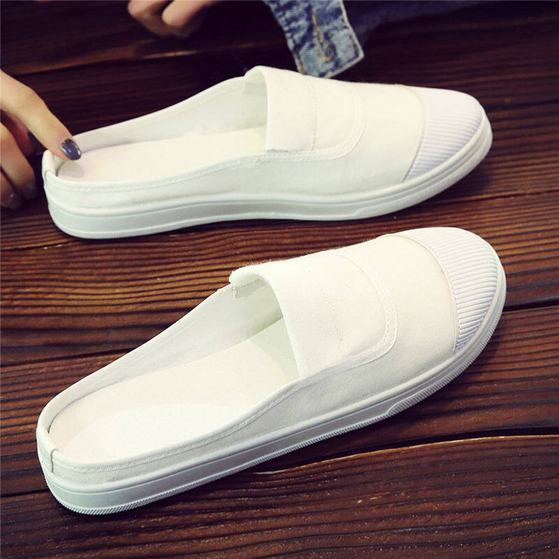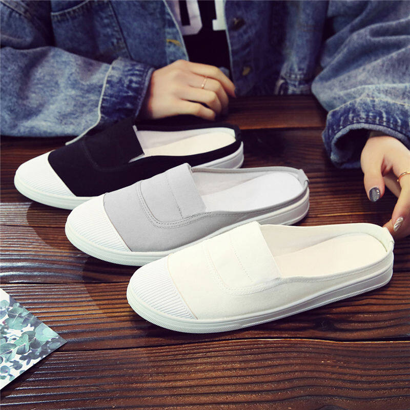 Half-drag canvas shoes female spring Korean version without heel slippers