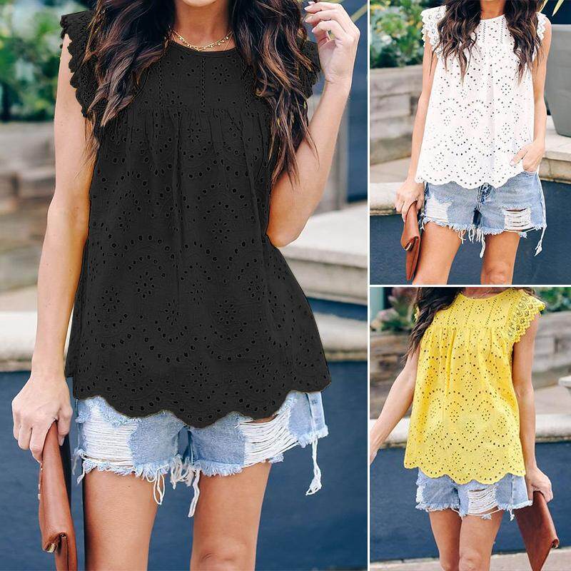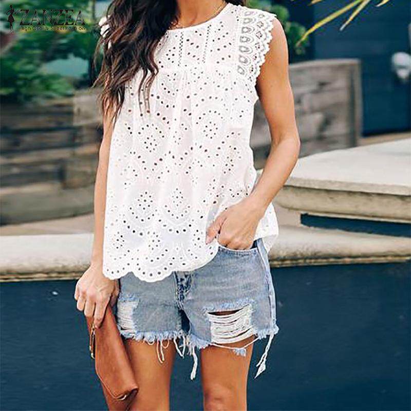 ZANZEA Womens Summer Beach Tank Tops Ladies Lace O-Neck Vest Shirt
