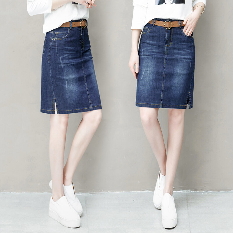 Denim Skirt Women's Summer 2021 New High Waist A- line Skirt Fashion Casual Split Sheath Step Skirt