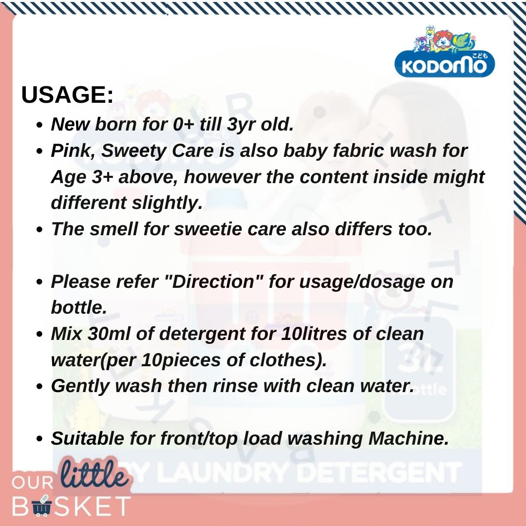 Kodomo| Baby Laundry Detergent| 3 Litres| Giant BOTTLE |Suitable for Newborn, Baby, Children (1pcs Pink)