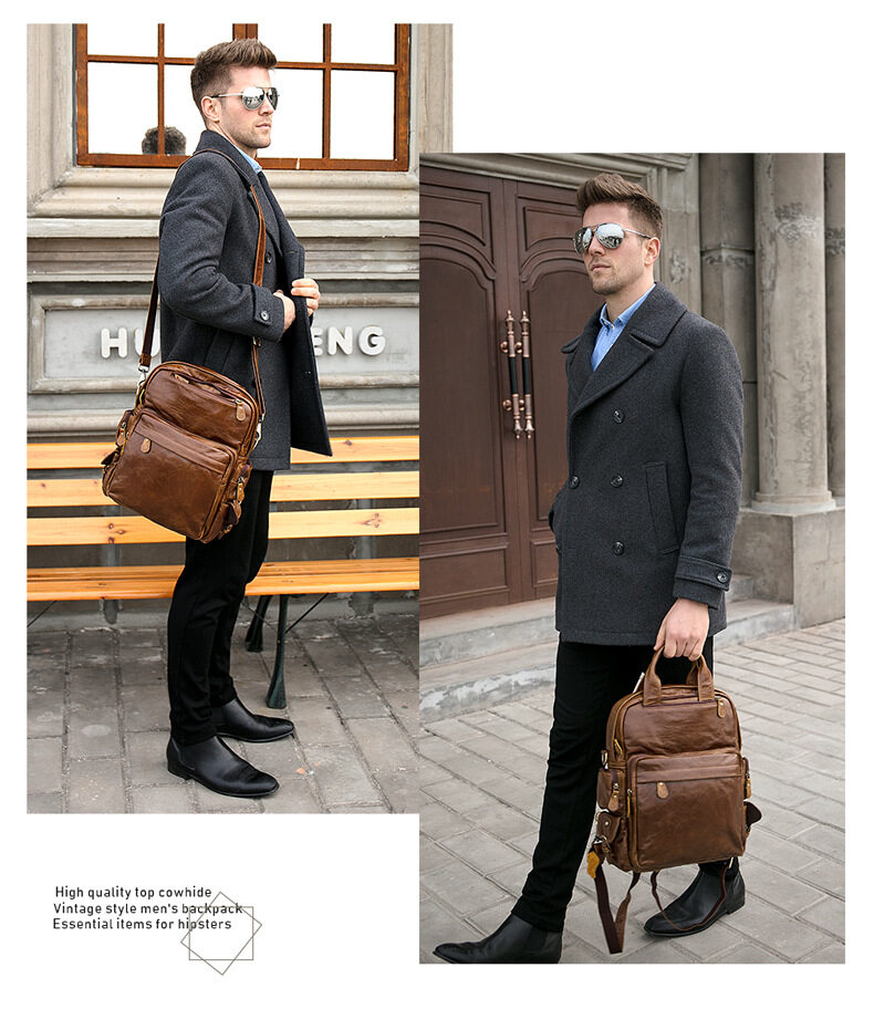 Royal Bagger Genuine Cow Leather Waterproof High Capacity Travel Computer Backpack For Boys Men Outdoor Work Handbag Simple Men's Student Backpacks Hot Sale School Shoulder Bags