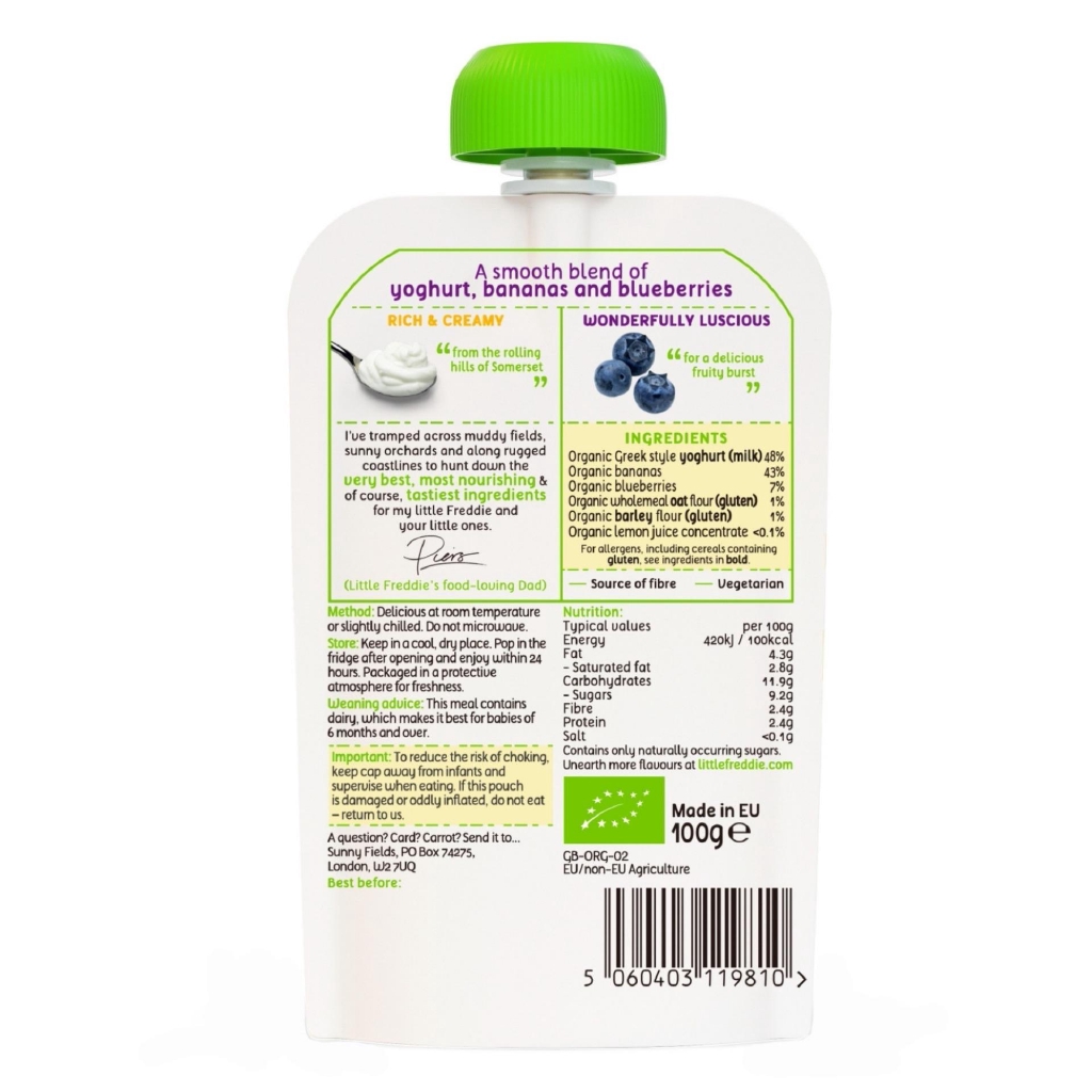 [Bundle of 2] Organic Little Freddie Creamy Blueberry & Banana Greek Style Yoghurt 100g