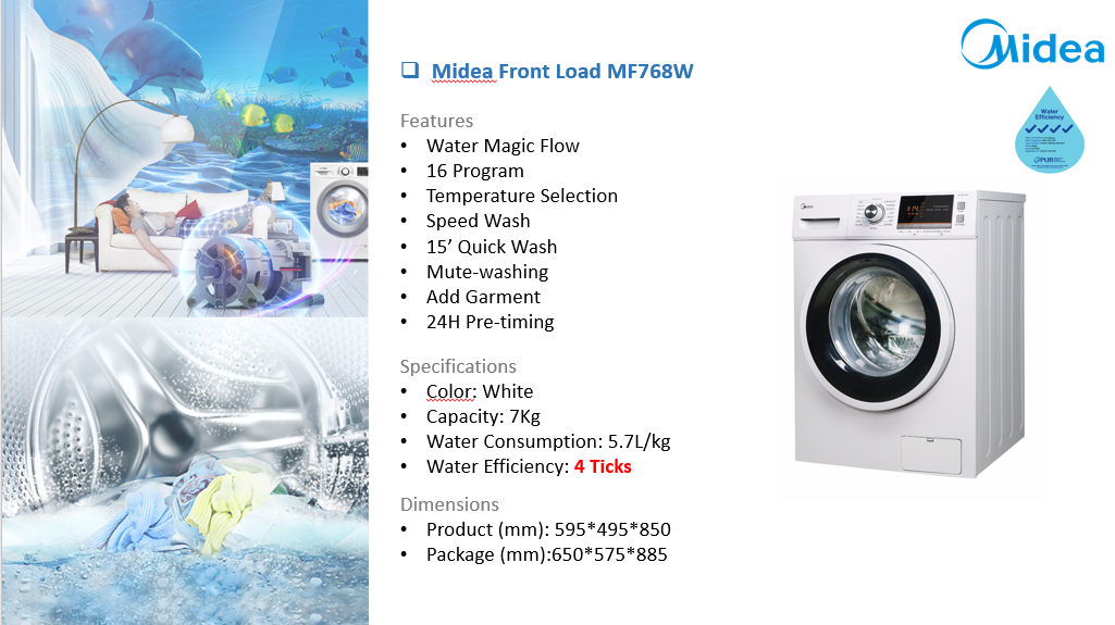 (Bulky) MIDEA MF768W 7KG FRONT LOAD WASHING MACHINE