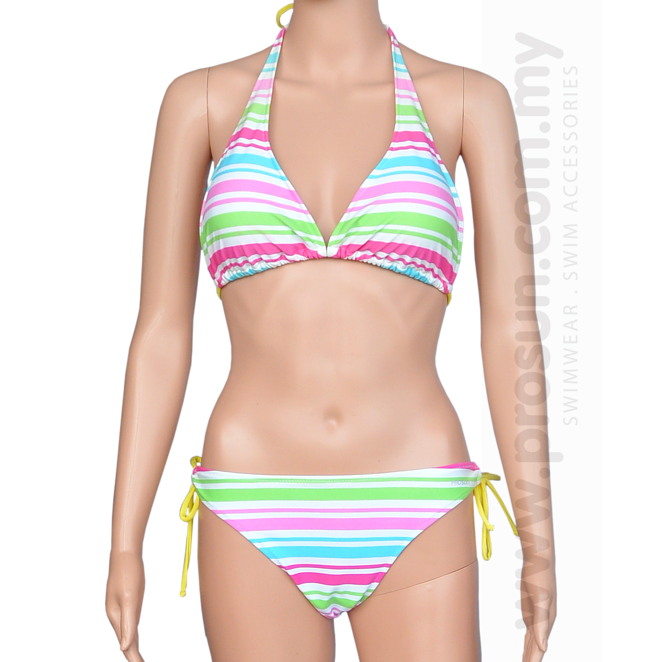 Prosun Halterneck Candy Striped Bikini Ladies Woman 2-Piece Swimsuit Set Swimwear Swimming Water Sports (BH-Candy)