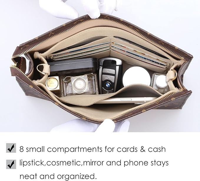 [Organized]: One pocket compartment and eight smaller compartments are enough for your phone, lipstick, mirror, and cards.